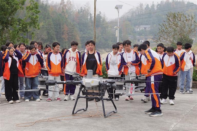 传统与科技的碰撞更让研学之旅成绩满满。在水库上方,农业技术员操控植保无东谈主机腾飞,机身下方的喷头均匀喷洒水雾,短短几分钟就完成半亩农田的模拟植保。孩子们纷繁惊叹当代农业的科技魔力,在传统农耕与当代科技的对比中拓宽了视线。