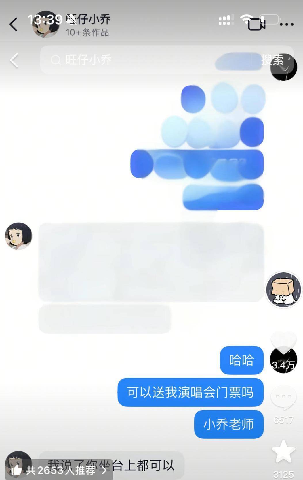可是,“旺仔小乔”一方仅在平台后台与他联系,并屡次示意“多帮我望望男厅、多望望女厅签约歌手(在旺仔小乔方语音厅蹧跶)”“我开演唱会的技术你别坐第一行了你来坐我台上”;向交付东谈主高兴提供演唱会门票;保证过年技术线下碰面、提供签名等。